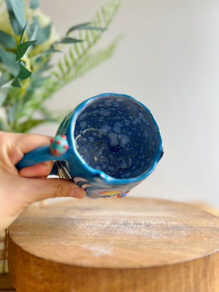 Handmade with lots and lots of love from stoneware clay (so it’s nice and strong) and fired twice with the highest quality underglaze paints and a high gloss clear glaze. This process from wet clay to finished product takes weeks and each piece is unique and there is no other out there like it!