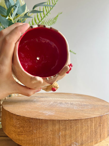 Handmade with lots and lots of love from stoneware clay (so it’s nice and strong) and fired twice with the highest quality underglaze paints and a high gloss clear glaze. This process from wet clay to finished product takes weeks and each piece is unique and there is no other out there like it!