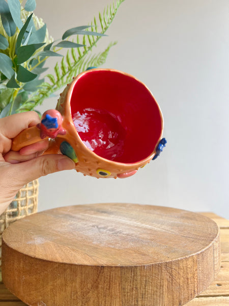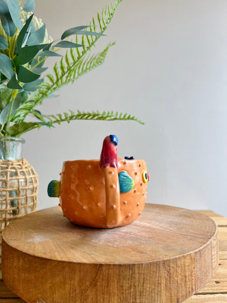 Handmade with lots and lots of love from stoneware clay (so it’s nice and strong) and fired twice with the highest quality underglaze paints and a high gloss clear glaze. This process from wet clay to finished product takes weeks and each piece is unique and there is no other out there like it!
