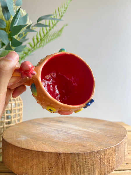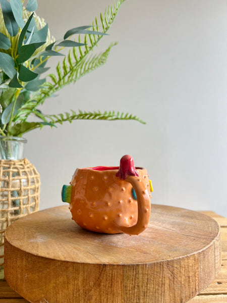 Handmade with lots and lots of love from stoneware clay (so it’s nice and strong) and fired twice with the highest quality underglaze paints and a high gloss clear glaze. This process from wet clay to finished product takes weeks and each piece is unique and there is no other out there like it!