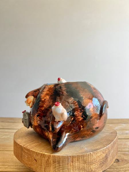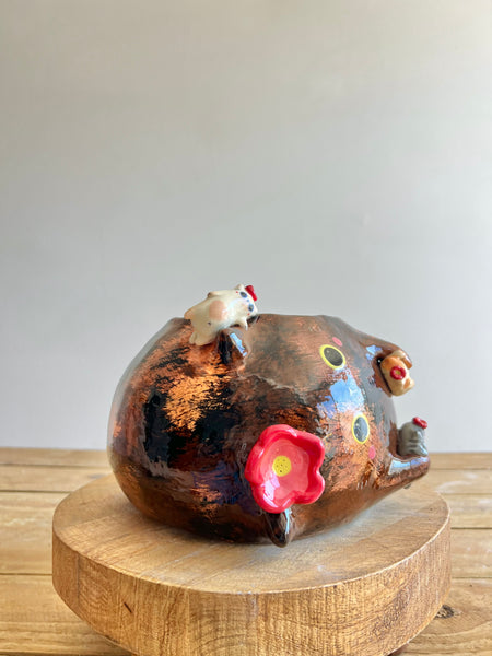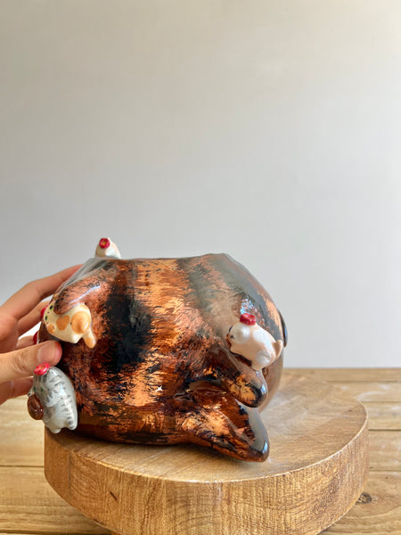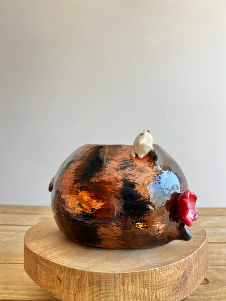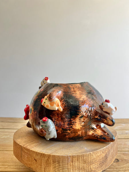 Handmade with lots and lots of love from stoneware clay (so it’s nice and strong) and fired twice with the highest quality underglaze paints and a high gloss clear glaze. This process from wet clay to finished product takes weeks and each piece is unique and there is no other out there like it!
