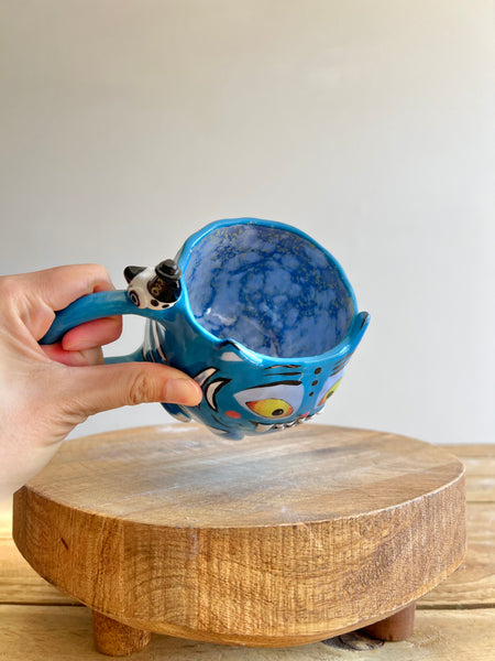 Handmade with lots and lots of love from stoneware clay (so it’s nice and strong) and fired twice with the highest quality underglaze paints and a high gloss clear glaze. This process from wet clay to finished product takes weeks and each piece is unique and there is no other out there like it!