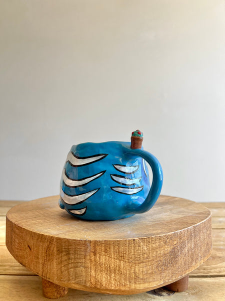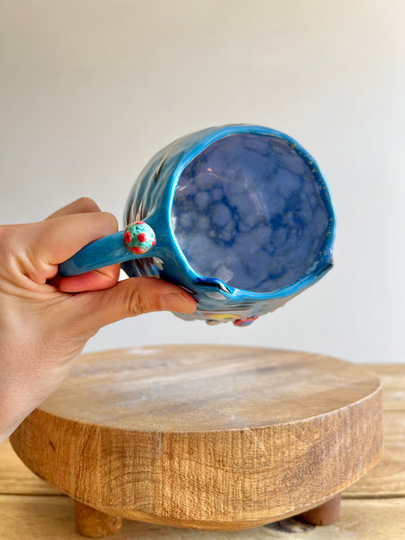 Handmade with lots and lots of love from stoneware clay (so it’s nice and strong) and fired twice with the highest quality underglaze paints and a high gloss clear glaze. This process from wet clay to finished product takes weeks and each piece is unique and there is no other out there like it!
