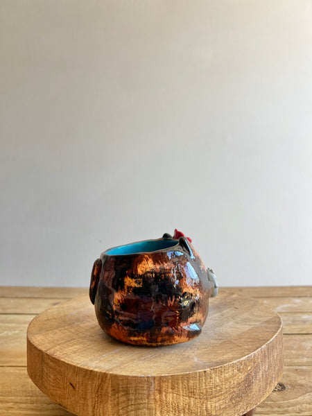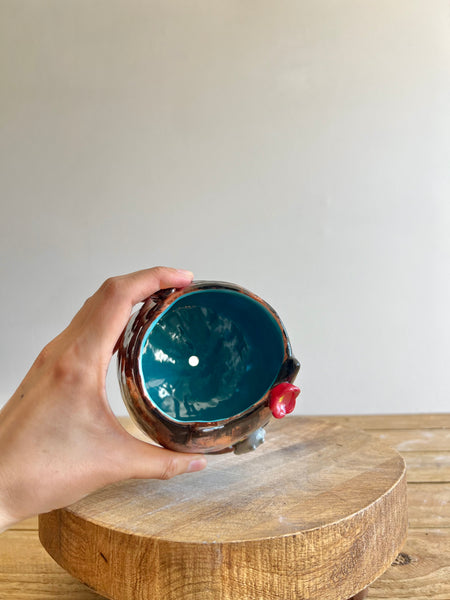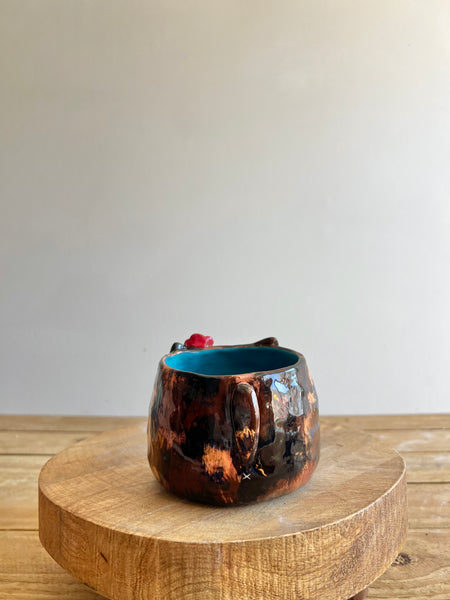 Handmade with lots and lots of love from stoneware clay (so it’s nice and strong) and fired twice with the highest quality underglaze paints and a high gloss clear glaze. This process from wet clay to finished product takes weeks and each piece is unique and there is no other out there like it!