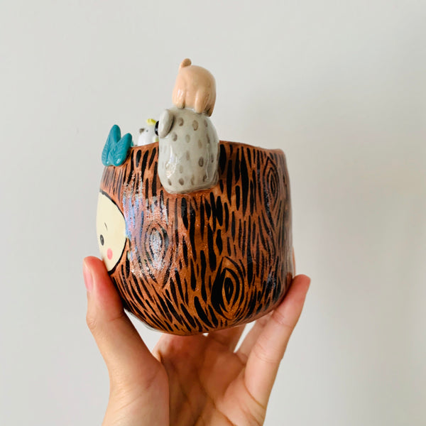 Handmade with lots and lots of love from stoneware clay (so it’s nice and strong) and fired twice with the highest quality underglaze paints and a high gloss clear glaze. This process from wet clay to finished product takes weeks and each piece is unique and there is no other out there like it!