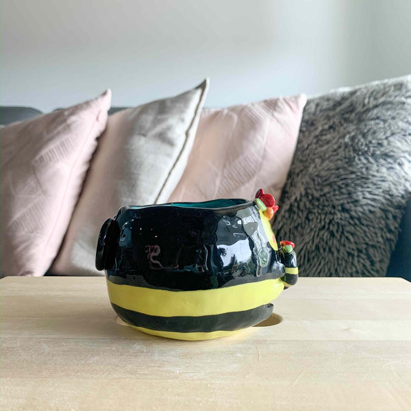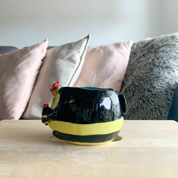 Handmade with lots and lots of love from stoneware clay (so it’s nice and strong) and fired twice with the highest quality underglaze paints and a high gloss clear glaze. This process from wet clay to finished product takes weeks and each piece is unique and there is no other out there like it!