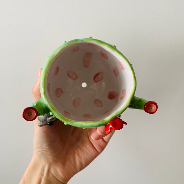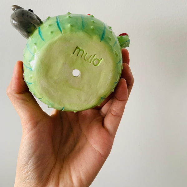 Handmade with lots and lots of love from stoneware clay (so it’s nice and strong) and fired twice with the highest quality underglaze paints and a high gloss clear glaze. This process from wet clay to finished product takes weeks and each piece is unique and there is no other out there like it!