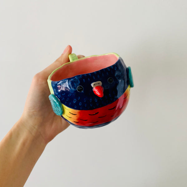 Handmade with lots and lots of love from stoneware clay (so it’s nice and strong) and fired twice with the highest quality underglaze paints and a high gloss clear glaze. This process from wet clay to finished product takes weeks and each piece is unique and there is no other out there like it!