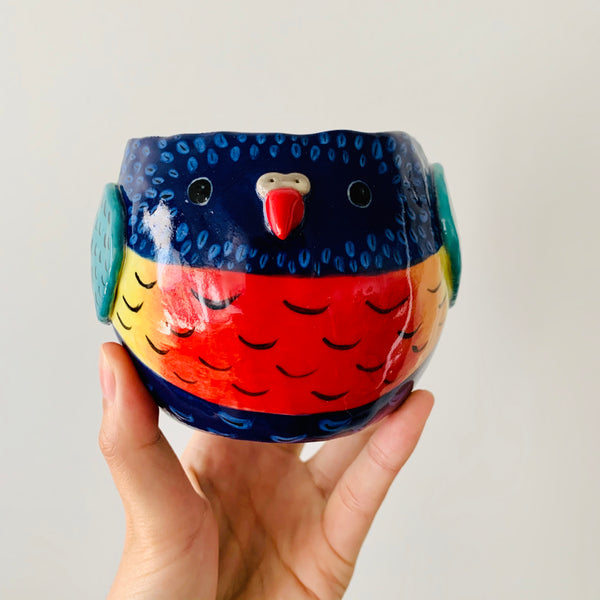 Handmade with lots and lots of love from stoneware clay (so it’s nice and strong) and fired twice with the highest quality underglaze paints and a high gloss clear glaze. This process from wet clay to finished product takes weeks and each piece is unique and there is no other out there like it!