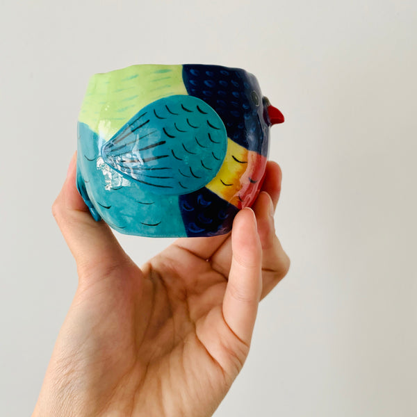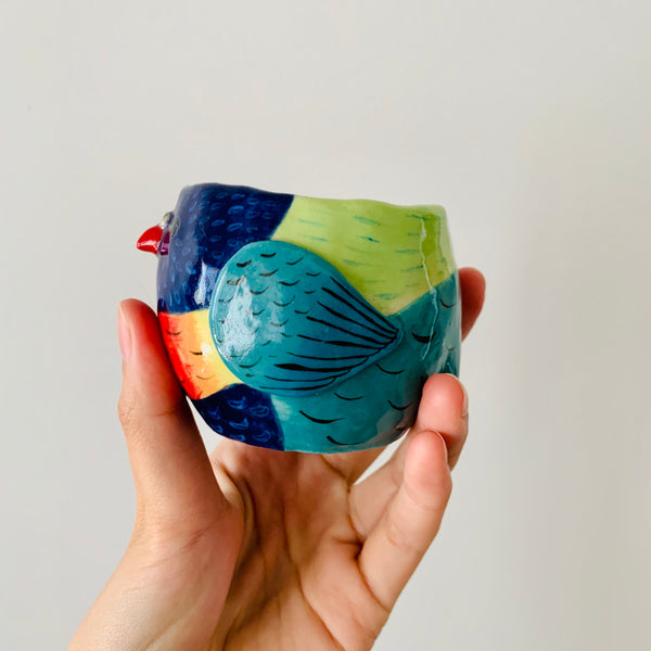 Handmade with lots and lots of love from stoneware clay (so it’s nice and strong) and fired twice with the highest quality underglaze paints and a high gloss clear glaze. This process from wet clay to finished product takes weeks and each piece is unique and there is no other out there like it!